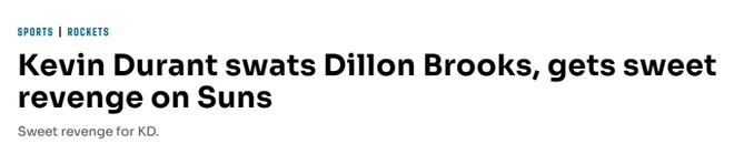 第二节中段,太阳还领先11分,杜兰特和太阳防守大闸狄龙(同样是6月和杜兰特一起被火箭交易到太阳的球员)互喷不止。