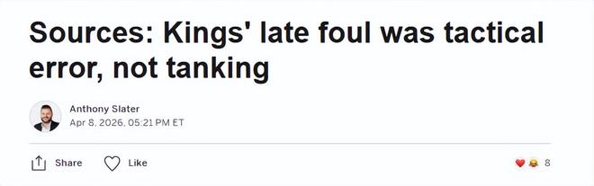 消息人士告诉ESPN,这一策略纯属判断失误:克里斯蒂本想在比赛时间跌破3分钟、自动失去暂停之前叫个暂停,但他误判了勇士已进入犯规罚球阶段,结果让生涯罚球命中率86.4%的库里走上罚球线——即便要故意犯规,场上也有比库里更合适的人选。国王最终以105-110输掉比赛。
