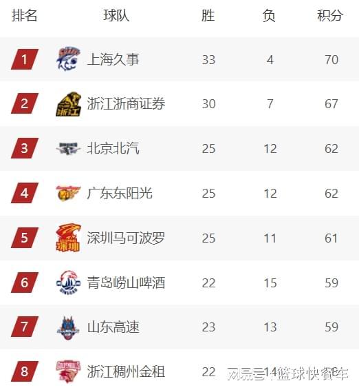 附:CBA积分榜最新排名