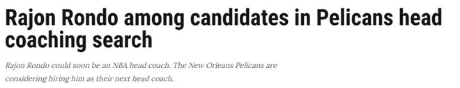 北京时间4月27日,据NBA记者马克-斯坦恩消息,新奥尔良鹈鹕队正认真考虑聘请NBA后卫拉简-隆多出任球队主教练,隆多也是该职位的潜在候选人之一。