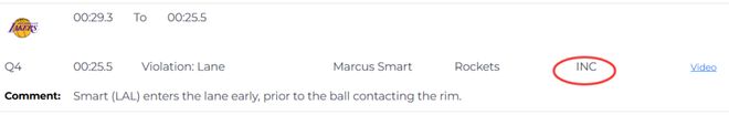 第二次漏判发生在距离加时赛结束还有1分29秒。裁判报告指出,詹姆斯在与火箭球员拼抢时拿到球,但这时他的脚已经出界,裁判没有响哨。虽然这一球理论上是湖人获利,但詹姆斯救球回来,火箭又得到球权。这一漏判的影响,对比赛来说没有上一次那么明显。