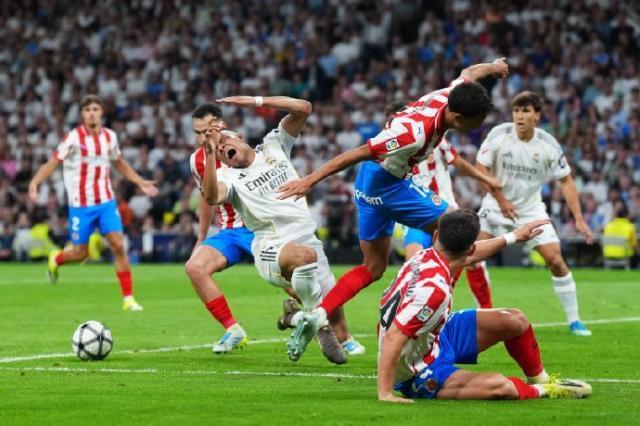 皇马全场22脚射门,是对手2倍有余,虽然真正具威胁的射门并不算多,但预期进球达到2.22,赫罗纳只有0.52,光看数据的话着实该赢。皇马也确实有绝杀的机会,第88分钟,姆巴佩从右路突入禁区,他先是抢到莫雷诺身前,随后被夹防的雷斯一肘打中眉梢,顿时血流如注。然而主裁判并未吹罚犯规,比赛继续,姆巴佩在地上躺了半分多钟后,直到维尼修斯在另一侧被对方拉倒,裁判才吹停比赛。场上所有人围着满脸血红的姆巴佩,主裁判最后示意VAR告诉他没有点球。